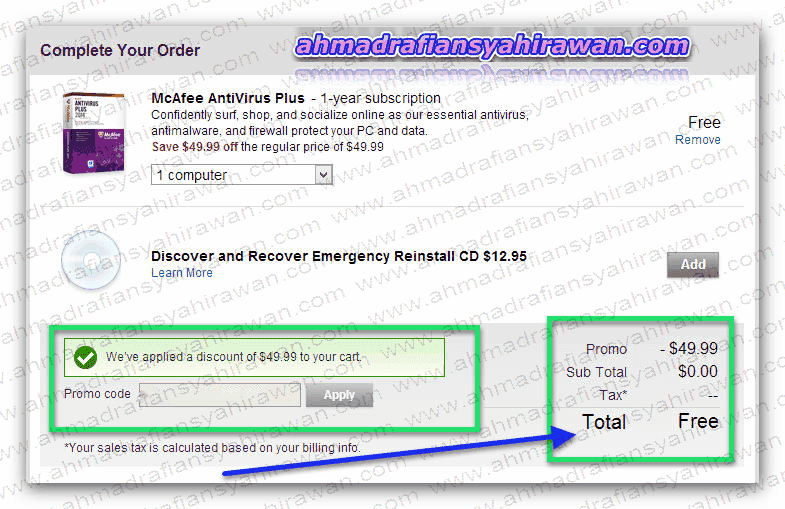Catatan: tambahan 12 bulan dari McAfee berisi perpanjangan otomatis di masa depan! Jika Anda tidak ingin membayar untuk perangkat lunak ini dimasa mendatang atau pada tahun berikutnya, pastikan Anda untuk membatalkan perpanjangan otomatis sebelum masa gratis berlangganan satu tahun Anda berakhir. Berikut ke halaman ini untuk meninaktifkan fitur perpanjangan otomatis.